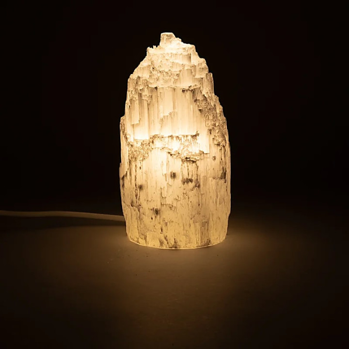 Cette lampe en sélénite cristalline déploie l'éclat subtil d'un minéral rare et précieux. Avec un poids de ±2500 g et des dimensions de ±20x9 cm, elle constitue une pièce sculpturale pour tout intérieur spirituel ou contemporain. La sélénite, variété cristalline du gypse, brille d'une luminescence douce et naturelle. Traditionnellement, ce minéral est réputé pour favoriser la clarté de pensée et la purification énergétique des espaces selon les traditions cristallines millénaires. Utilisée depuis l'Antiquité dans les rituels d'illumination spirituelle et de méditation, la sélénite crée une atmosphère de sérénité et d'harmonie. Une lampe d'exception pour transformer tout intérieur en sanctuaire de lumière et de paix.